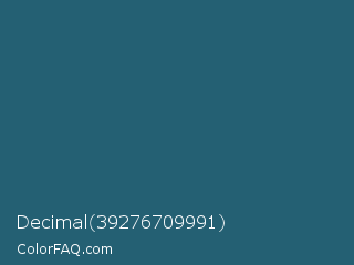 Decimal 39276709991 Color is a dark blue color and the nearest color is Casal #2f6168. Hex code #246073 and RGB value is rgb(36,96,115). In RGB color space, this color is composed of 14% red, 38% green, 45% blue, In CMYK color space, this color is composed of 69% cyan, 17% magenta, 0% yellow , 55% black , In HSL color space, this color has a hue angle of 194° , 52% saturation and 30% lightness.