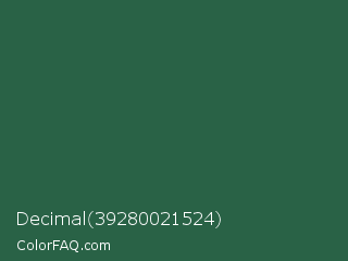 Decimal 39280021524 Color is a dark green color and the nearest color is Green Pea #1d6142. Hex code #296246 and RGB value is rgb(41,98,70). In RGB color space, this color is composed of 16% red, 38% green, 27% blue, In CMYK color space, this color is composed of 58% cyan, 0% magenta, 29% yellow , 62% black , In HSL color space, this color has a hue angle of 151° , 41% saturation and 27% lightness.