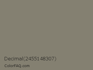 Decimal 2455148307 Color is a normal yellow color and the nearest color is Bandicoot #858470. Hex code #848071 and RGB value is rgb(132,128,113). In RGB color space, this color is composed of 52% red, 50% green, 44% blue, In CMYK color space, this color is composed of 0% cyan, 3% magenta, 14% yellow , 48% black , In HSL color space, this color has a hue angle of 47° , 8% saturation and 48% lightness.