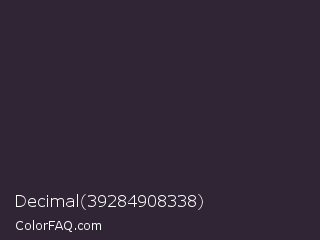 Decimal 39284908338 Color is a very dark purple color and the nearest color is Bleached Cedar #2c2133. Hex code #302534 and RGB value is rgb(48,37,52). In RGB color space, this color is composed of 19% red, 15% green, 20% blue, In CMYK color space, this color is composed of 8% cyan, 29% magenta, 0% yellow , 80% black , In HSL color space, this color has a hue angle of 284° , 17% saturation and 17% lightness.