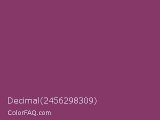Decimal 2456298309 Color is a normal magenta color and the nearest color is Boysenberry #873260. Hex code #863869 and RGB value is rgb(134,56,105). In RGB color space, this color is composed of 53% red, 22% green, 41% blue, In CMYK color space, this color is composed of 0% cyan, 58% magenta, 22% yellow , 47% black , In HSL color space, this color has a hue angle of 322° , 41% saturation and 37% lightness.