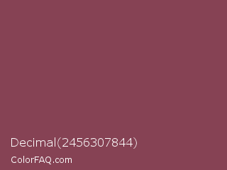 Decimal 2456307844 Color is a normal rose color and the nearest color is Deep Ruby #843f5b. Hex code #864254 and RGB value is rgb(134,66,84). In RGB color space, this color is composed of 53% red, 26% green, 33% blue, In CMYK color space, this color is composed of 0% cyan, 51% magenta, 37% yellow , 47% black , In HSL color space, this color has a hue angle of 344° , 34% saturation and 39% lightness.
