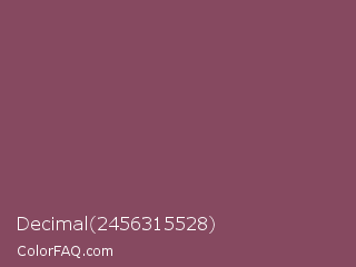Decimal 2456315528 Color is a normal rose color and the nearest color is Cannon Pink #894367. Hex code #864960 and RGB value is rgb(134,73,96). In RGB color space, this color is composed of 53% red, 29% green, 38% blue, In CMYK color space, this color is composed of 0% cyan, 46% magenta, 28% yellow , 47% black , In HSL color space, this color has a hue angle of 337° , 29% saturation and 41% lightness.