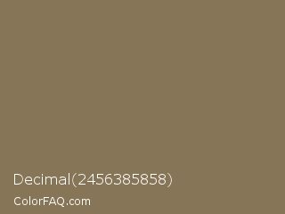 Decimal 2456385858 Color is a normal orange color and the nearest color is Gold Fusion #85754e. Hex code #867556 and RGB value is rgb(134,117,86). In RGB color space, this color is composed of 53% red, 46% green, 34% blue, In CMYK color space, this color is composed of 0% cyan, 13% magenta, 36% yellow , 47% black , In HSL color space, this color has a hue angle of 39° , 22% saturation and 43% lightness.