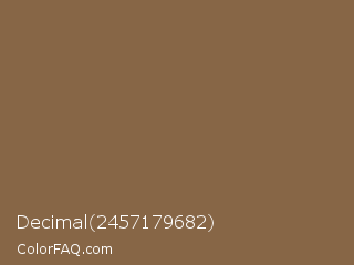 Decimal 2457179682 Color is a normal orange color and the nearest color is Raw Umber #826644. Hex code #876646 and RGB value is rgb(135,102,70). In RGB color space, this color is composed of 53% red, 40% green, 27% blue, In CMYK color space, this color is composed of 0% cyan, 24% magenta, 48% yellow , 47% black , In HSL color space, this color has a hue angle of 30° , 32% saturation and 40% lightness.
