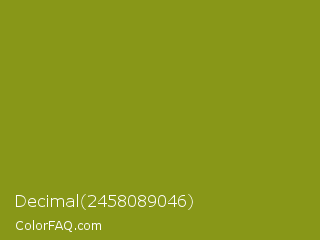 Decimal 2458089046 Color is a normal yellow color and the nearest color is Trendy Green #7c881a. Hex code #889718 and RGB value is rgb(136,151,24). In RGB color space, this color is composed of 53% red, 59% green, 9% blue, In CMYK color space, this color is composed of 10% cyan, 0% magenta, 84% yellow , 41% black , In HSL color space, this color has a hue angle of 67° , 73% saturation and 34% lightness.