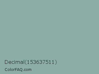 Decimal 153637511 Color is a light cyan color and the nearest color is Cascade #8ba9a5. Hex code #8daea7 and RGB value is rgb(141,174,167). In RGB color space, this color is composed of 55% red, 68% green, 65% blue, In CMYK color space, this color is composed of 19% cyan, 0% magenta, 4% yellow , 32% black , In HSL color space, this color has a hue angle of 167° , 17% saturation and 62% lightness.