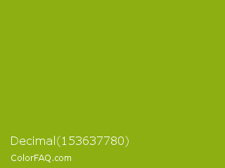 Decimal 153637780 Color is a normal lime color and the nearest color is Apple Green #8db600. Hex code #8daf12 and RGB value is rgb(141,175,18). In RGB color space, this color is composed of 55% red, 69% green, 7% blue, In CMYK color space, this color is composed of 19% cyan, 0% magenta, 90% yellow , 31% black , In HSL color space, this color has a hue angle of 73° , 81% saturation and 38% lightness.