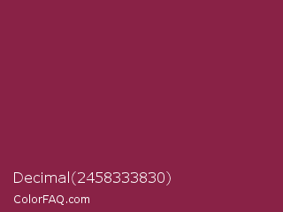 Decimal 2458333830 Color is a normal rose color and the nearest color is Disco #871550. Hex code #892246 and RGB value is rgb(137,34,70). In RGB color space, this color is composed of 54% red, 13% green, 27% blue, In CMYK color space, this color is composed of 0% cyan, 75% magenta, 49% yellow , 46% black , In HSL color space, this color has a hue angle of 339° , 60% saturation and 34% lightness.