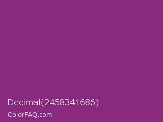Decimal 2458341686 Color is a normal magenta color and the nearest color is Razzmic Berry Crayola #843179. Hex code #892980 and RGB value is rgb(137,41,128). In RGB color space, this color is composed of 54% red, 16% green, 50% blue, In CMYK color space, this color is composed of 0% cyan, 70% magenta, 7% yellow , 46% black , In HSL color space, this color has a hue angle of 306° , 54% saturation and 35% lightness.