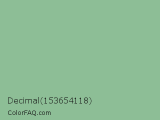 Decimal 153654118 Color is a light green color and the nearest color is Dark Sea Green #8fbc8f. Hex code #8dbe96 and RGB value is rgb(141,190,150). In RGB color space, this color is composed of 55% red, 75% green, 59% blue, In CMYK color space, this color is composed of 26% cyan, 0% magenta, 21% yellow , 25% black , In HSL color space, this color has a hue angle of 131° , 27% saturation and 65% lightness.