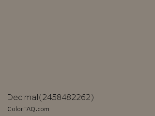 Decimal 2458482262 Color is a normal orange color and the nearest color is Hurricane #877c7b. Hex code #898178 and RGB value is rgb(137,129,120). In RGB color space, this color is composed of 54% red, 51% green, 47% blue, In CMYK color space, this color is composed of 0% cyan, 6% magenta, 12% yellow , 46% black , In HSL color space, this color has a hue angle of 32° , 7% saturation and 50% lightness.