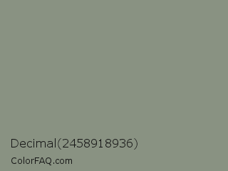 Decimal 2458918936 Color is a normal green color and the nearest color is Dolphin Gray #828e84. Hex code #899282 and RGB value is rgb(137,146,130). In RGB color space, this color is composed of 54% red, 57% green, 51% blue, In CMYK color space, this color is composed of 6% cyan, 0% magenta, 11% yellow , 43% black , In HSL color space, this color has a hue angle of 94° , 7% saturation and 54% lightness.