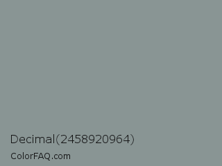 Decimal 2458920964 Color is a normal cyan color and the nearest color is Mantle #8b9c90. Hex code #899594 and RGB value is rgb(137,149,148). In RGB color space, this color is composed of 54% red, 58% green, 58% blue, In CMYK color space, this color is composed of 8% cyan, 0% magenta, 1% yellow , 42% black , In HSL color space, this color has a hue angle of 175° , 5% saturation and 56% lightness.