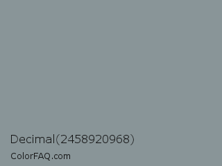 Decimal 2458920968 Color is a normal cyan color and the nearest color is Regent Gray #86949f. Hex code #899598 and RGB value is rgb(137,149,152). In RGB color space, this color is composed of 54% red, 58% green, 60% blue, In CMYK color space, this color is composed of 10% cyan, 2% magenta, 0% yellow , 40% black , In HSL color space, this color has a hue angle of 192° , 7% saturation and 57% lightness.