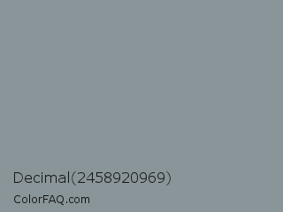 Decimal 2458920969 Color is a normal blue color and the nearest color is Regent Gray #86949f. Hex code #899599 and RGB value is rgb(137,149,153). In RGB color space, this color is composed of 54% red, 58% green, 60% blue, In CMYK color space, this color is composed of 10% cyan, 3% magenta, 0% yellow , 40% black , In HSL color space, this color has a hue angle of 195° , 7% saturation and 57% lightness.