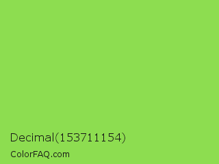 Decimal 153711154 Color is a normal green color and the nearest color is Kiwi #8ee53f. Hex code #8ddd50 and RGB value is rgb(141,221,80). In RGB color space, this color is composed of 55% red, 87% green, 31% blue, In CMYK color space, this color is composed of 36% cyan, 0% magenta, 64% yellow , 13% black , In HSL color space, this color has a hue angle of 94° , 67% saturation and 59% lightness.