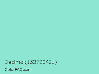 Decimal 153720421 Color is a light cyan color and the nearest color is Riptide #8be6d8. Hex code #8de6d1 and RGB value is rgb(141,230,209). In RGB color space, this color is composed of 55% red, 90% green, 82% blue, In CMYK color space, this color is composed of 39% cyan, 0% magenta, 9% yellow , 10% black , In HSL color space, this color has a hue angle of 166° , 64% saturation and 73% lightness.