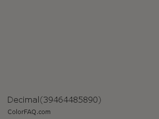 Decimal 39464485890 Color is a normal orange color and the nearest color is Nickel #727472. Hex code #757472 and RGB value is rgb(117,116,114). In RGB color space, this color is composed of 46% red, 45% green, 45% blue, In CMYK color space, this color is composed of 0% cyan, 1% magenta, 3% yellow , 54% black , In HSL color space, this color has a hue angle of 40° , 1% saturation and 45% lightness.