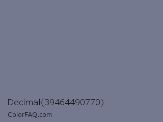 Decimal 39464490770 Color is a normal blue color and the nearest color is Rhythm #777696. Hex code #757990 and RGB value is rgb(117,121,144). In RGB color space, this color is composed of 46% red, 47% green, 56% blue, In CMYK color space, this color is composed of 19% cyan, 16% magenta, 0% yellow , 44% black , In HSL color space, this color has a hue angle of 231° , 11% saturation and 51% lightness.
