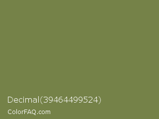 Decimal 39464499524 Color is a normal lime color and the nearest color is Gold Fusion #85754e. Hex code #758248 and RGB value is rgb(117,130,72). In RGB color space, this color is composed of 46% red, 51% green, 28% blue, In CMYK color space, this color is composed of 10% cyan, 0% magenta, 45% yellow , 49% black , In HSL color space, this color has a hue angle of 73° , 29% saturation and 40% lightness.