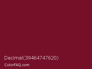 Decimal 39464747620 Color is a dark red color and the nearest color is Claret #7f1734. Hex code #761028 and RGB value is rgb(118,16,40). In RGB color space, this color is composed of 46% red, 6% green, 16% blue, In CMYK color space, this color is composed of 0% cyan, 86% magenta, 66% yellow , 54% black , In HSL color space, this color has a hue angle of 346° , 76% saturation and 26% lightness.
