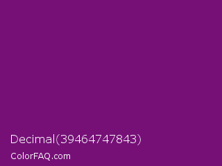 Decimal 39464747843 Color is a dark magenta color and the nearest color is Patriarch #800080. Hex code #761077 and RGB value is rgb(118,16,119). In RGB color space, this color is composed of 46% red, 6% green, 47% blue, In CMYK color space, this color is composed of 1% cyan, 87% magenta, 0% yellow , 53% black , In HSL color space, this color has a hue angle of 299° , 76% saturation and 26% lightness.