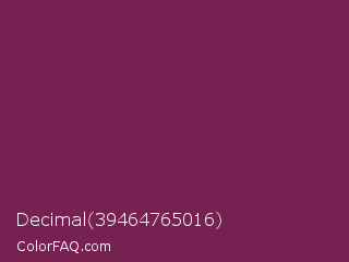 Decimal 39464765016 Color is a dark magenta color and the nearest color is Pansy Purple #78184a. Hex code #762152 and RGB value is rgb(118,33,82). In RGB color space, this color is composed of 46% red, 13% green, 32% blue, In CMYK color space, this color is composed of 0% cyan, 72% magenta, 31% yellow , 54% black , In HSL color space, this color has a hue angle of 325° , 56% saturation and 30% lightness.