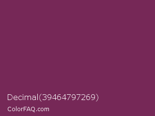 Decimal 39464797269 Color is a normal magenta color and the nearest color is Byzantium #702963. Hex code #762857 and RGB value is rgb(118,40,87). In RGB color space, this color is composed of 46% red, 16% green, 34% blue, In CMYK color space, this color is composed of 0% cyan, 66% magenta, 26% yellow , 54% black , In HSL color space, this color has a hue angle of 324° , 49% saturation and 31% lightness.