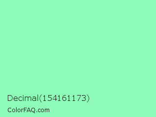 Decimal 154161173 Color is a light green color and the nearest color is Teal Deer #99e6b3. Hex code #8dfbb7 and RGB value is rgb(141,251,183). In RGB color space, this color is composed of 55% red, 98% green, 72% blue, In CMYK color space, this color is composed of 44% cyan, 0% magenta, 27% yellow , 2% black , In HSL color space, this color has a hue angle of 143° , 93% saturation and 77% lightness.
