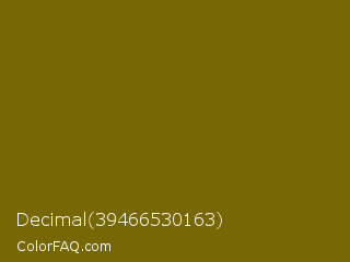 Decimal 39466530163 Color is a dark yellow color and the nearest color is Yukon Gold #7b6608. Hex code #786705 and RGB value is rgb(120,103,5). In RGB color space, this color is composed of 47% red, 40% green, 2% blue, In CMYK color space, this color is composed of 0% cyan, 14% magenta, 96% yellow , 53% black , In HSL color space, this color has a hue angle of 51° , 92% saturation and 25% lightness.