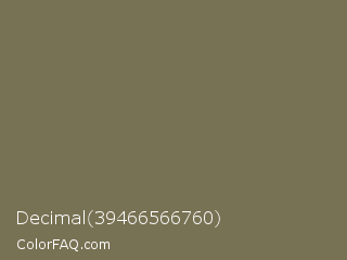 Decimal 39466566760 Color is a normal yellow color and the nearest color is Crocodile #736d58. Hex code #787254 and RGB value is rgb(120,114,84). In RGB color space, this color is composed of 47% red, 45% green, 33% blue, In CMYK color space, this color is composed of 0% cyan, 5% magenta, 30% yellow , 53% black , In HSL color space, this color has a hue angle of 50° , 18% saturation and 40% lightness.