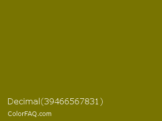 Decimal 39466567831 Color is a dark yellow color and the nearest color is Bronze Yellow #737000. Hex code #787401 and RGB value is rgb(120,116,1). In RGB color space, this color is composed of 47% red, 45% green, 0% blue, In CMYK color space, this color is composed of 0% cyan, 3% magenta, 99% yellow , 53% black , In HSL color space, this color has a hue angle of 58° , 98% saturation and 24% lightness.