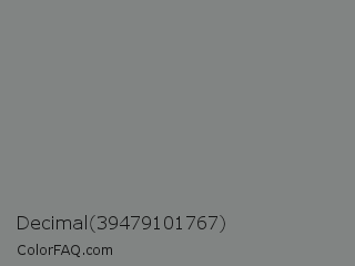 Decimal 39479101767 Color is a normal green color and the nearest color is Gunsmoke #828685. Hex code #818483 and RGB value is rgb(129,132,131). In RGB color space, this color is composed of 51% red, 52% green, 51% blue, In CMYK color space, this color is composed of 2% cyan, 0% magenta, 1% yellow , 48% black , In HSL color space, this color has a hue angle of 160° , 1% saturation and 51% lightness.