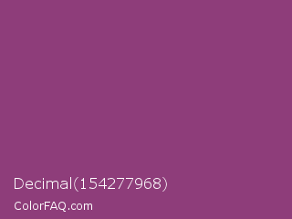 Decimal 154277968 Color is a normal magenta color and the nearest color is Plum #8e4585. Hex code #8e3d7a and RGB value is rgb(142,61,122). In RGB color space, this color is composed of 56% red, 24% green, 48% blue, In CMYK color space, this color is composed of 0% cyan, 57% magenta, 14% yellow , 44% black , In HSL color space, this color has a hue angle of 315° , 40% saturation and 40% lightness.