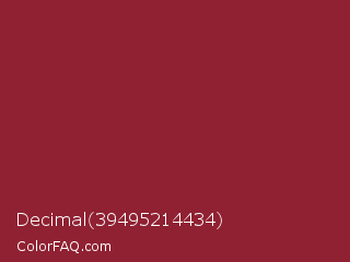 Decimal 39495214434 Color is a normal red color and the nearest color is Antique Ruby #841b2d. Hex code #902132 and RGB value is rgb(144,33,50). In RGB color space, this color is composed of 56% red, 13% green, 20% blue, In CMYK color space, this color is composed of 0% cyan, 77% magenta, 65% yellow , 44% black , In HSL color space, this color has a hue angle of 351° , 63% saturation and 35% lightness.