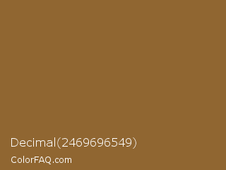Decimal 2469696549 Color is a normal orange color and the nearest color is Potters Clay #8c5738. Hex code #906631 and RGB value is rgb(144,102,49). In RGB color space, this color is composed of 56% red, 40% green, 19% blue, In CMYK color space, this color is composed of 0% cyan, 29% magenta, 66% yellow , 44% black , In HSL color space, this color has a hue angle of 33° , 49% saturation and 38% lightness.