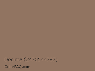 Decimal 2470544787 Color is a normal orange color and the nearest color is Cement #8d7662. Hex code #917461 and RGB value is rgb(145,116,97). In RGB color space, this color is composed of 57% red, 45% green, 38% blue, In CMYK color space, this color is composed of 0% cyan, 20% magenta, 33% yellow , 43% black , In HSL color space, this color has a hue angle of 24° , 20% saturation and 47% lightness.