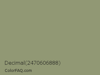 Decimal 2470606888 Color is a normal lime color and the nearest color is Artichoke #8f9779. Hex code #919874 and RGB value is rgb(145,152,116). In RGB color space, this color is composed of 57% red, 60% green, 45% blue, In CMYK color space, this color is composed of 5% cyan, 0% magenta, 24% yellow , 40% black , In HSL color space, this color has a hue angle of 72° , 15% saturation and 53% lightness.