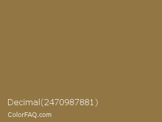 Decimal 2470987881 Color is a normal orange color and the nearest color is Dark Tan #918151. Hex code #927745 and RGB value is rgb(146,119,69). In RGB color space, this color is composed of 57% red, 47% green, 27% blue, In CMYK color space, this color is composed of 0% cyan, 18% magenta, 53% yellow , 43% black , In HSL color space, this color has a hue angle of 39° , 36% saturation and 42% lightness.