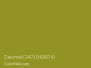 Decimal 2471043074 Color is a normal yellow color and the nearest color is Hacienda #98811b. Hex code #929322 and RGB value is rgb(146,147,34). In RGB color space, this color is composed of 57% red, 58% green, 13% blue, In CMYK color space, this color is composed of 1% cyan, 0% magenta, 77% yellow , 42% black , In HSL color space, this color has a hue angle of 61° , 62% saturation and 35% lightness.