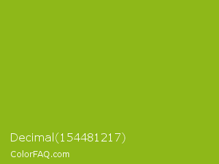Decimal 154481217 Color is a normal lime color and the nearest color is Citron #9fa91f. Hex code #8eb819 and RGB value is rgb(142,184,25). In RGB color space, this color is composed of 56% red, 72% green, 10% blue, In CMYK color space, this color is composed of 23% cyan, 0% magenta, 86% yellow , 28% black , In HSL color space, this color has a hue angle of 76° , 76% saturation and 41% lightness.