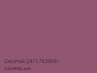 Decimal 2471763969 Color is a normal rose color and the nearest color is Sugar Plum #914e75. Hex code #935671 and RGB value is rgb(147,86,113). In RGB color space, this color is composed of 58% red, 34% green, 44% blue, In CMYK color space, this color is composed of 0% cyan, 41% magenta, 23% yellow , 42% black , In HSL color space, this color has a hue angle of 333° , 26% saturation and 46% lightness.