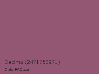 Decimal 2471763971 Color is a normal rose color and the nearest color is Sugar Plum #914e75. Hex code #935673 and RGB value is rgb(147,86,115). In RGB color space, this color is composed of 58% red, 34% green, 45% blue, In CMYK color space, this color is composed of 0% cyan, 41% magenta, 22% yellow , 42% black , In HSL color space, this color has a hue angle of 331° , 26% saturation and 46% lightness.