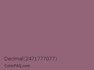 Decimal 2471777077 Color is a normal rose color and the nearest color is Mauve Taupe #915f6d. Hex code #936377 and RGB value is rgb(147,99,119). In RGB color space, this color is composed of 58% red, 39% green, 47% blue, In CMYK color space, this color is composed of 0% cyan, 33% magenta, 19% yellow , 42% black , In HSL color space, this color has a hue angle of 335° , 20% saturation and 48% lightness.