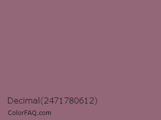 Decimal 2471780612 Color is a normal rose color and the nearest color is Opium #8e6f70. Hex code #936678 and RGB value is rgb(147,102,120). In RGB color space, this color is composed of 58% red, 40% green, 47% blue, In CMYK color space, this color is composed of 0% cyan, 31% magenta, 18% yellow , 42% black , In HSL color space, this color has a hue angle of 336° , 18% saturation and 49% lightness.