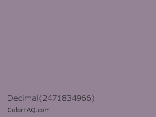 Decimal 2471834966 Color is a normal magenta color and the nearest color is Venus #928590. Hex code #938394 and RGB value is rgb(147,131,148). In RGB color space, this color is composed of 58% red, 51% green, 58% blue, In CMYK color space, this color is composed of 1% cyan, 11% magenta, 0% yellow , 42% black , In HSL color space, this color has a hue angle of 296° , 7% saturation and 55% lightness.