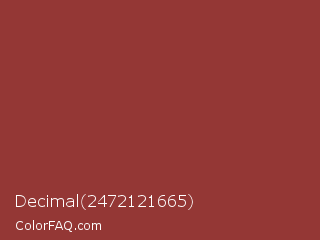 Decimal 2472121665 Color is a normal red color and the nearest color is El Salva #8f3e33. Hex code #943735 and RGB value is rgb(148,55,53). In RGB color space, this color is composed of 58% red, 22% green, 21% blue, In CMYK color space, this color is composed of 0% cyan, 63% magenta, 64% yellow , 42% black , In HSL color space, this color has a hue angle of 1° , 47% saturation and 39% lightness.