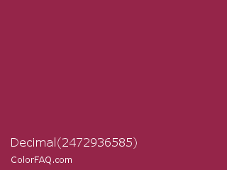 Decimal 2472936585 Color is a normal rose color and the nearest color is Big Dip O Ruby #9c2542. Hex code #952549 and RGB value is rgb(149,37,73). In RGB color space, this color is composed of 58% red, 15% green, 29% blue, In CMYK color space, this color is composed of 0% cyan, 75% magenta, 51% yellow , 42% black , In HSL color space, this color has a hue angle of 341° , 60% saturation and 36% lightness.