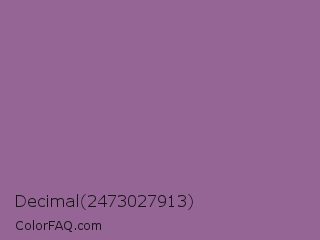 Decimal 2473027913 Color is a normal magenta color and the nearest color is Trendy Pink #8c6495. Hex code #956595 and RGB value is rgb(149,101,149). In RGB color space, this color is composed of 58% red, 40% green, 58% blue, In CMYK color space, this color is composed of 0% cyan, 32% magenta, 0% yellow , 42% black , In HSL color space, this color has a hue angle of 300° , 19% saturation and 49% lightness.